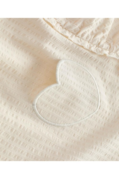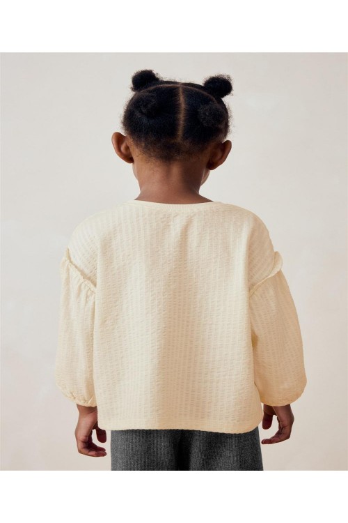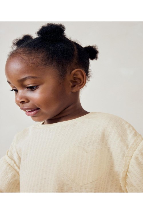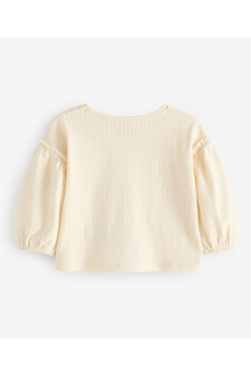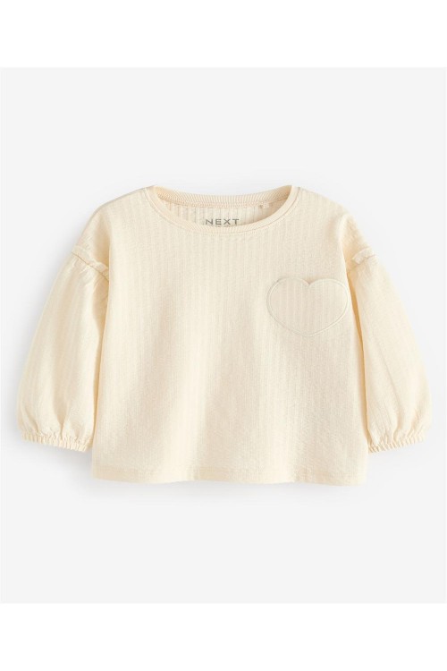 Мека, стилна и очарователна, тази кремава блуза с дълъг ръкав е перфектното допълнение към гардероба на всяко дете. Изработена от уютна рипсена материя, тя е нежна към кожата, като същевременно осигурява топлина и комфорт. Фините бухнали ръкави с еластични маншети добавят нотка елегантност, което я прави идеална както за ежедневни разходки, така и за специални поводи. Деликатният бродиран сърцевиден детайл на гърдите придава сладко и игриво излъчване. Дизайнът на NEXT съчетава семплост и изтънченост, гарантирайки, че вашето дете ще изглежда и ще се чувства прекрасно през целия ден.