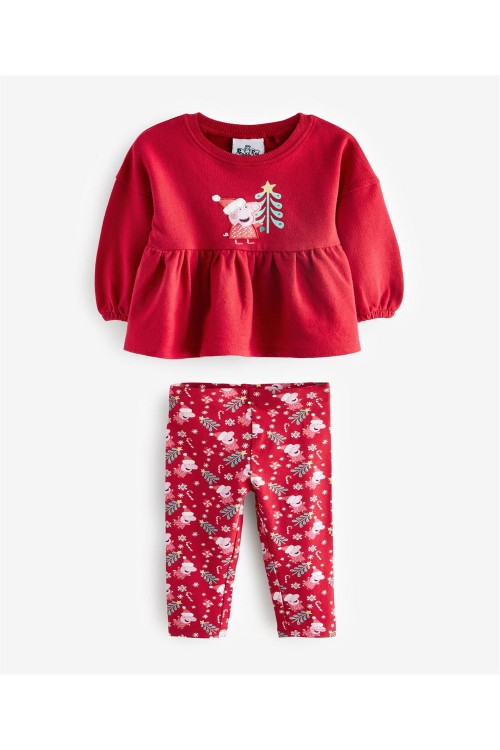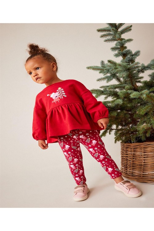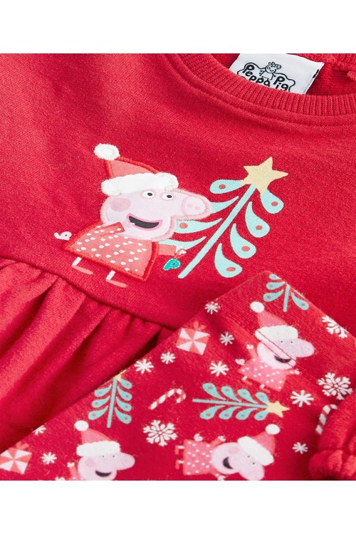 Коледен комплект Peppa Pig. Включва разкорена туника и еластично клинче с принт на любимите анимационни герои.