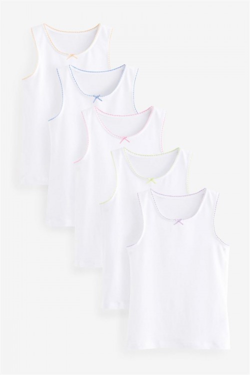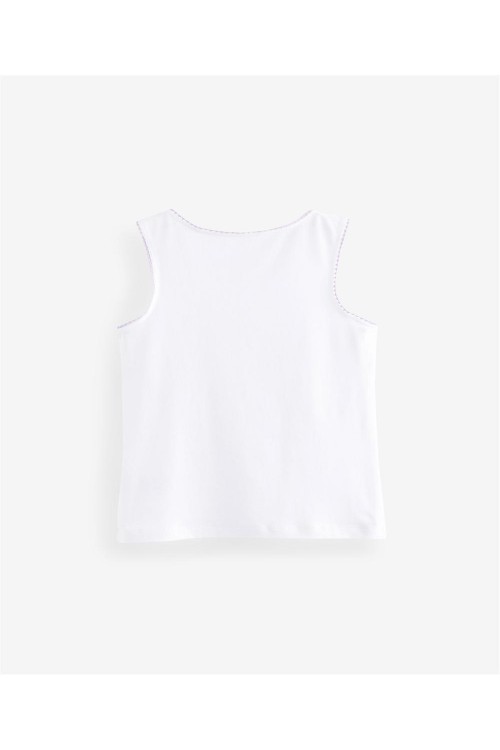 Комплект бели памучни потници с нежен цветен завършек около деколтето.