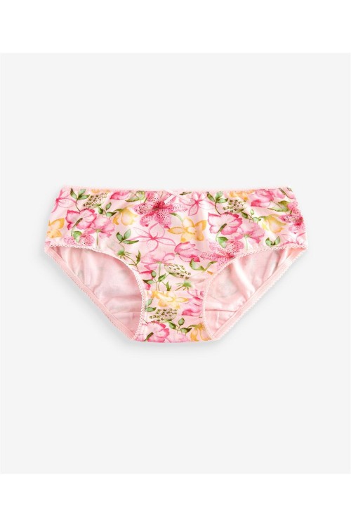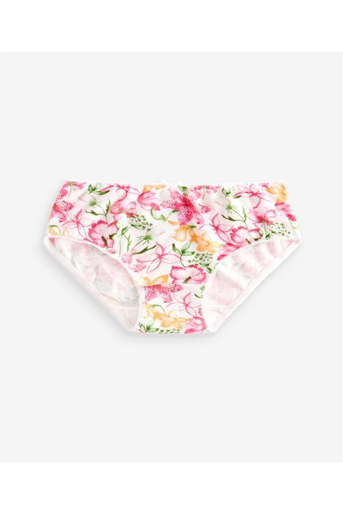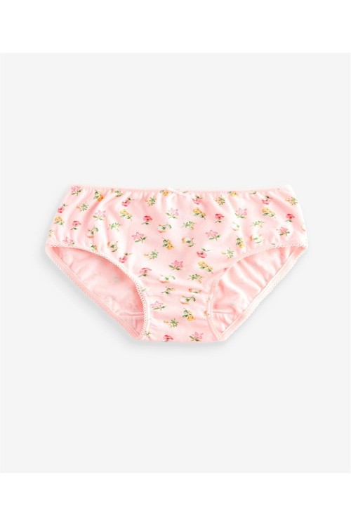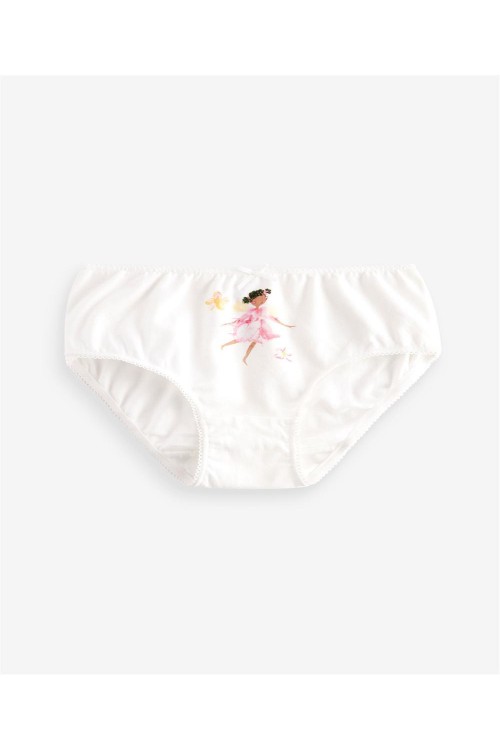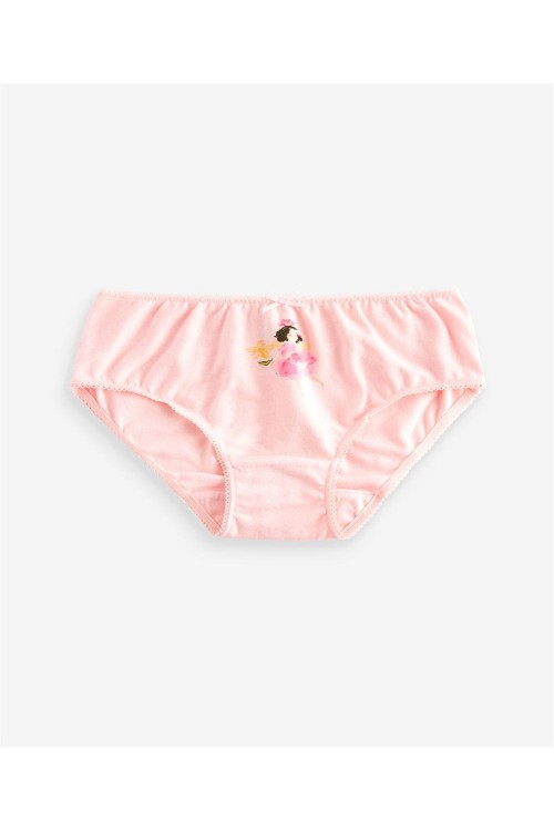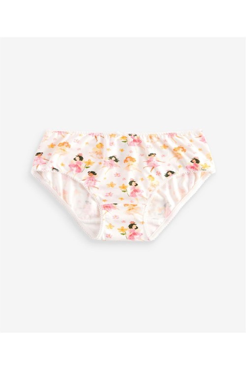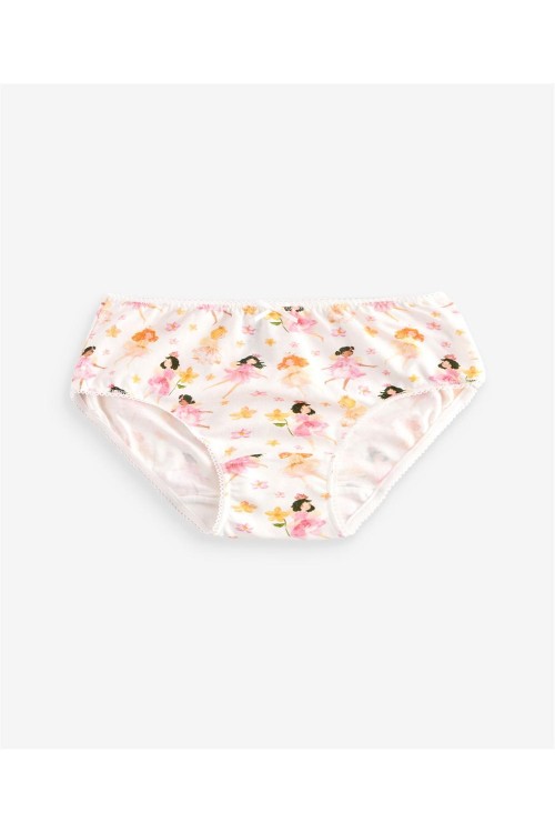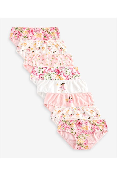 Комплект от 7 класически бикини в розово и бяло с феи и флорални мотиви, изработени от супер мек памук с добавена еластичност, осигуряват комфорт през целия ден и запазват формата си след пране.