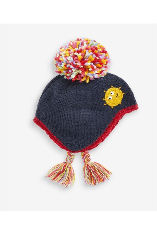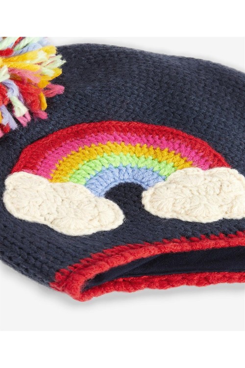 Страхотна плетена детска зимна шапка с пискюли. Цветен и забавен дизайн.