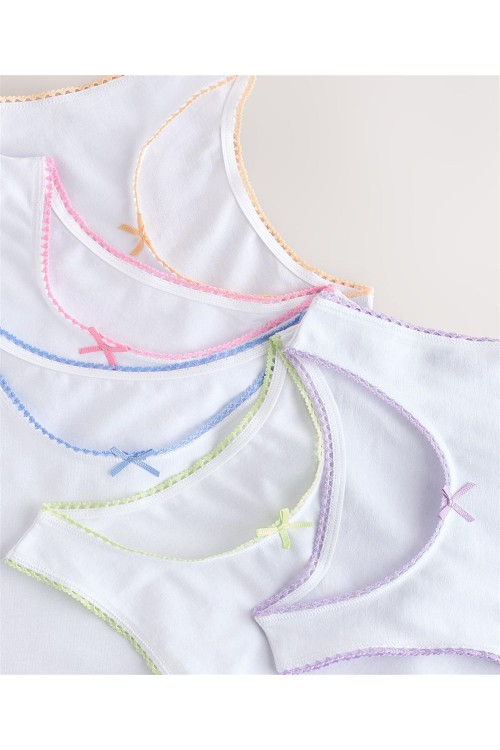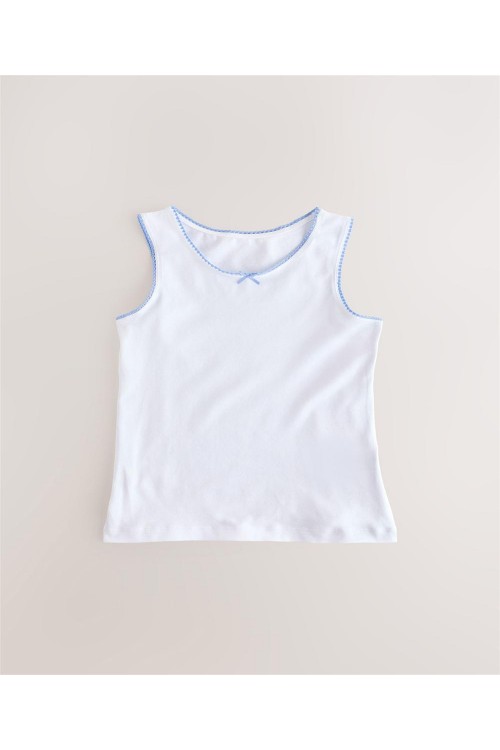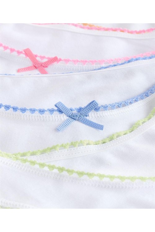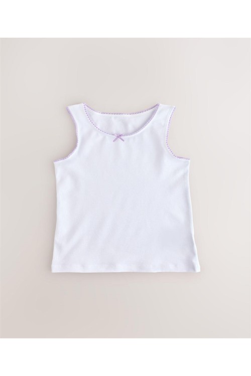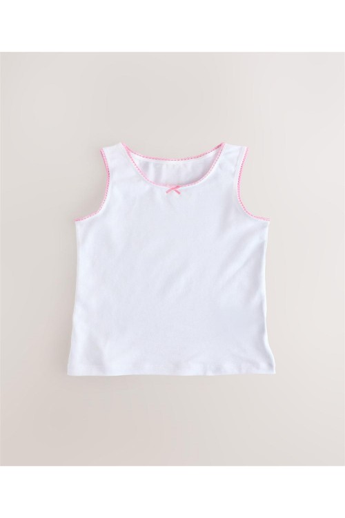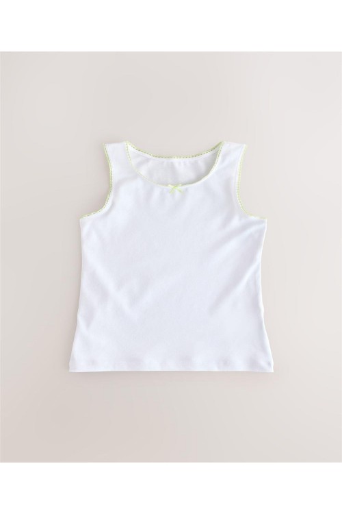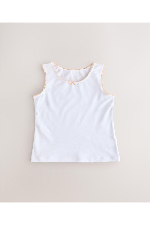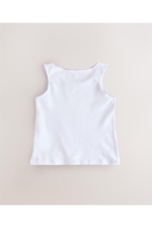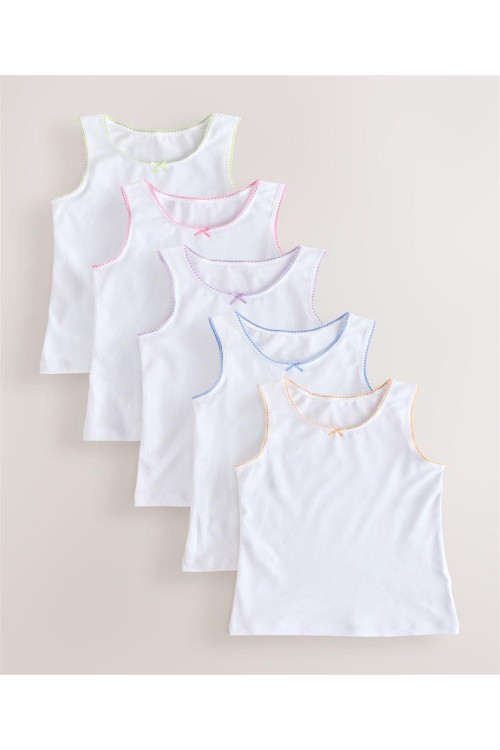 Комплект от 5 бр. бели потници с нежни цветни детайли.