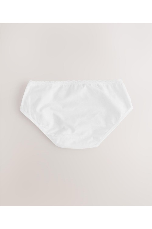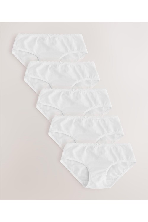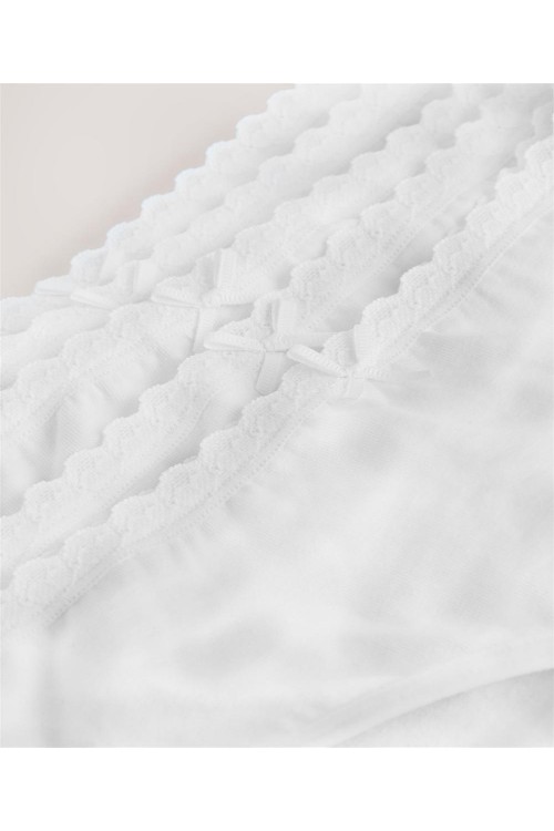 Комплект от 5 бр. бели класически бикини, изработени от супер мек памук с добавена еластичност, те осигуряват комфорт през целия ден и запазват формата си след пране.
