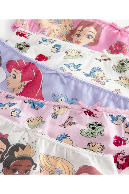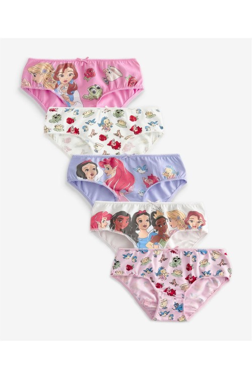 В официално лицензираната графика на Disney Princess, 5 бр. класически бикини в различни приятни цветове и щампи, изработени от супер мек памук с добавена еластичност, осигуряват комфорт през целия ден и запазват формата си след пране.