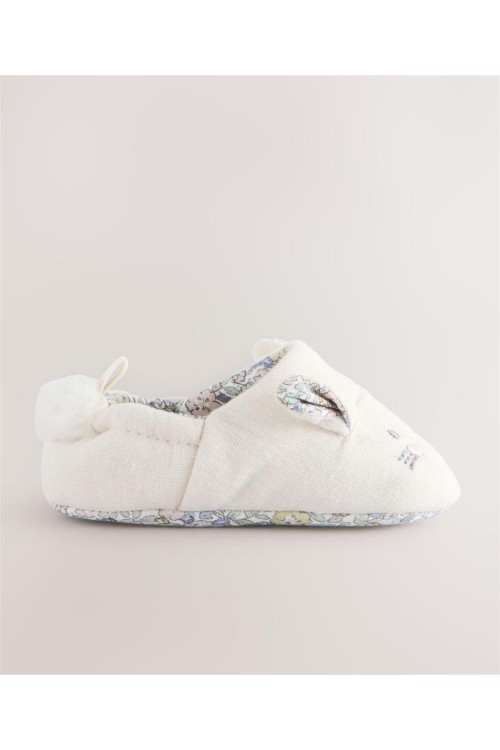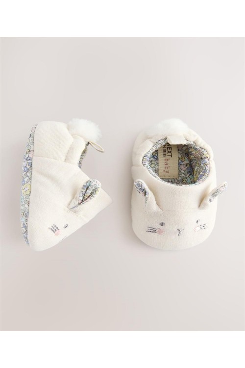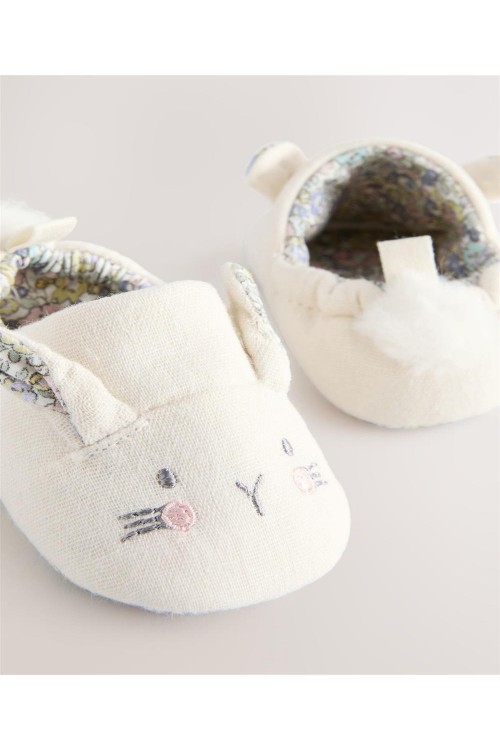 Позволете на вашето мъниче да ходи със стил с тези неутрални бебешки буйки тип зайче. Изработени мека материя със сладък дизайн на зайче, тези обувки с приплъзване имат еластичен гръб за лесно поставяне.