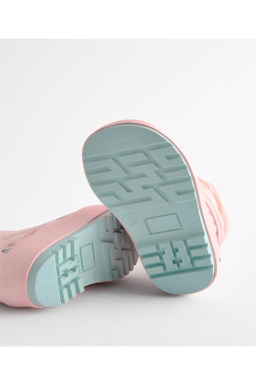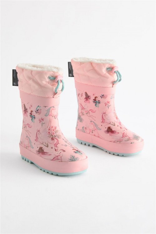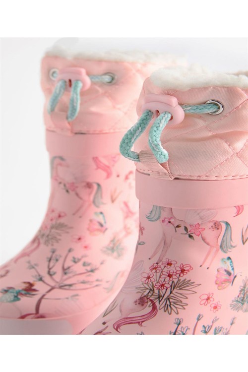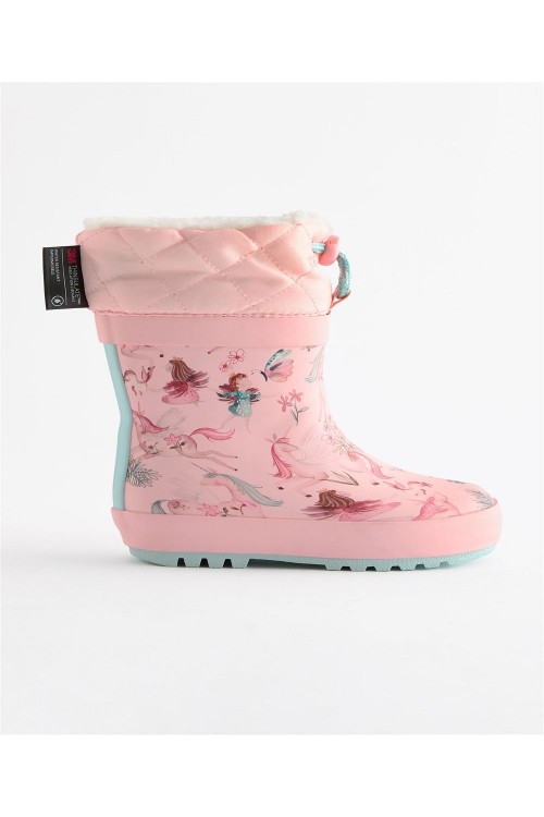 Добавете малко забавление към гардероба за дъждовни дни на вашето дете с тези уютни и водоустойчиви гумени розови ботуши с феи. Ботушите са с капитониран маншет на глезена със закопчаване и подплата от борг полар, завършени с щампа по цялата повърхност и устойчива на хлъзгане издръжлива подметка.
