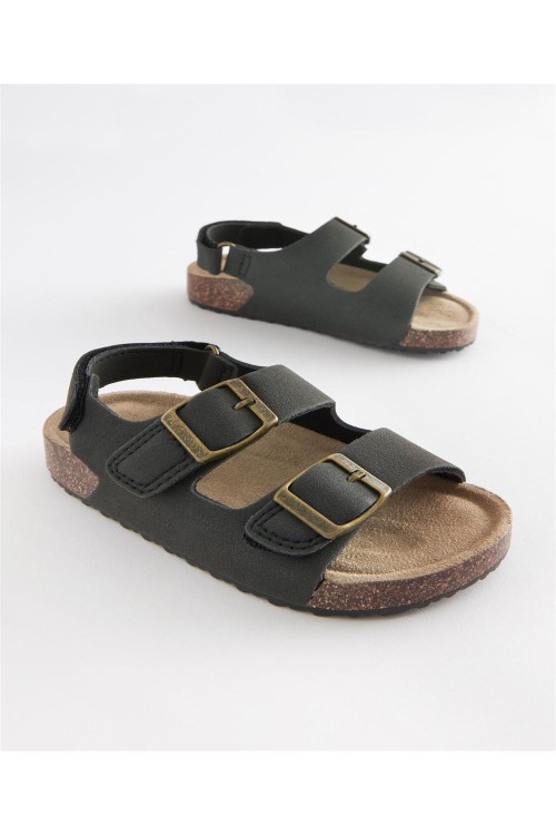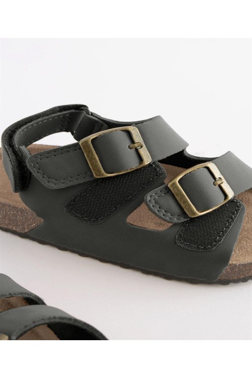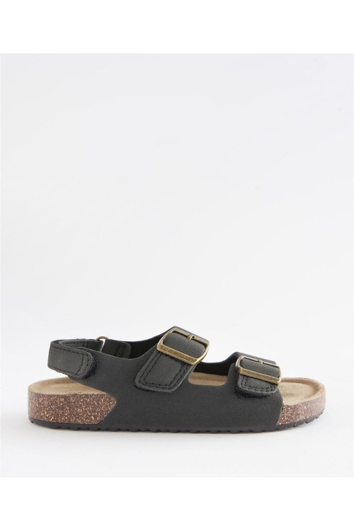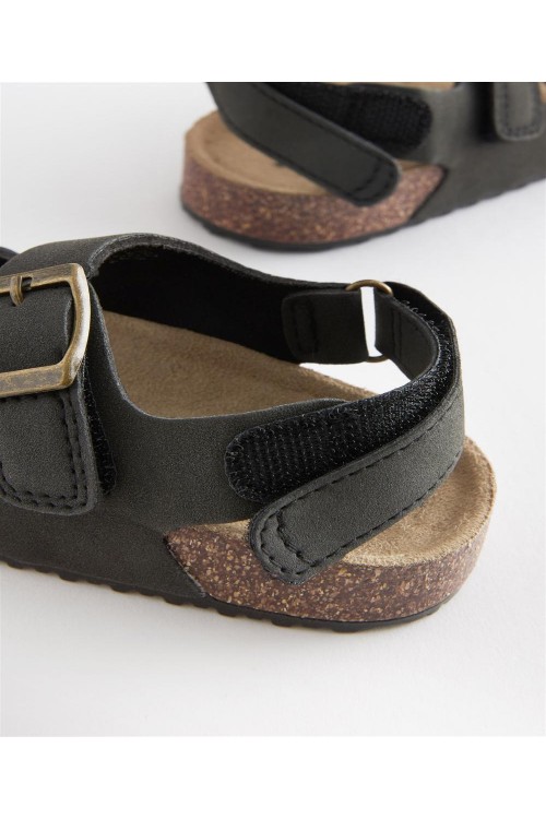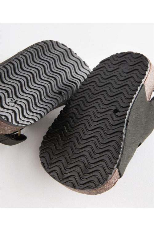 Тези черни сандали с коркова основа са удобно допълнение към летния им гардероб. С детайл с двойна катарама с докосване, те имат подплатени стелки, за да поддържат краката меки през целия ден.