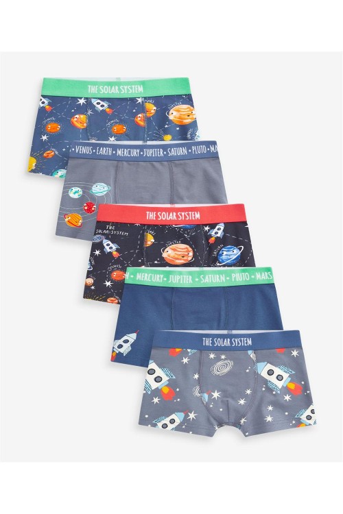 Комплект от 5 бр. боксерки в синьо с различни щампи.