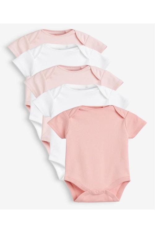 Запасете се с най-необходимите неща за бебето си с този комплект от 10 бр. памучни бодита в розови и бели нюанси, с къси ръкави, прегъващи се рамене и закопчаване с копчета за лесно преобличане.