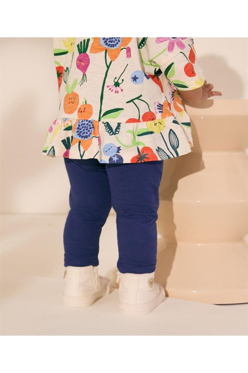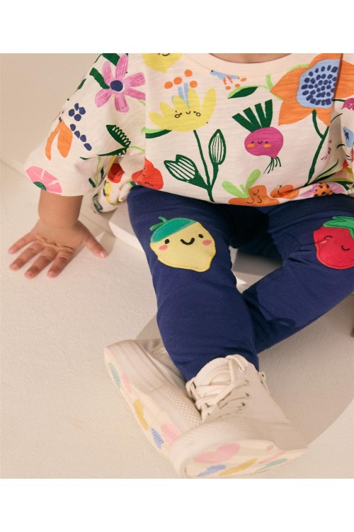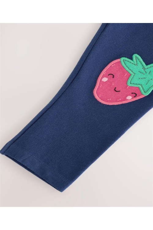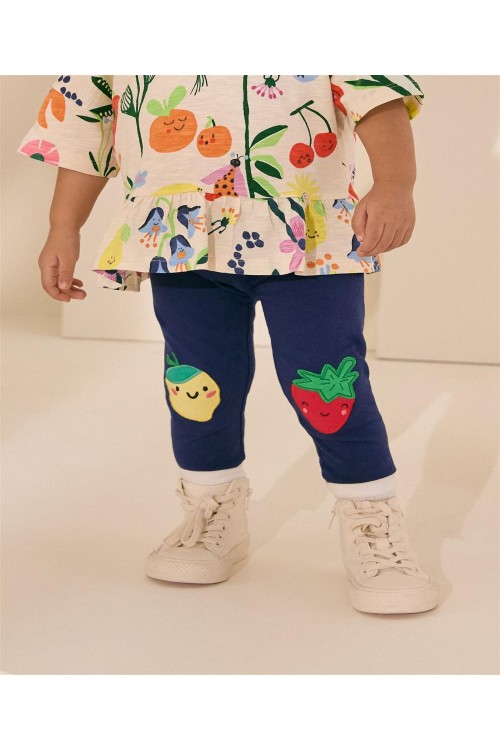 Тези клинове с високо съдържание на памук са еластични за комфортно усещане, украсени с ягоди и лимони на коленете, завършени с еластична талията.
