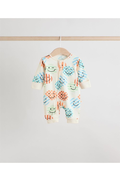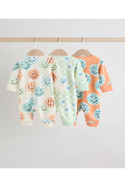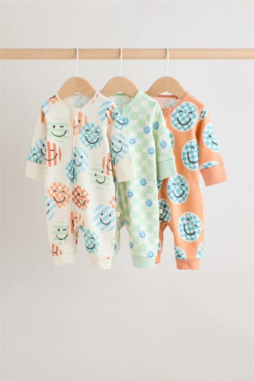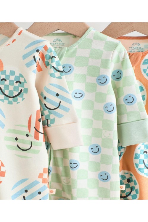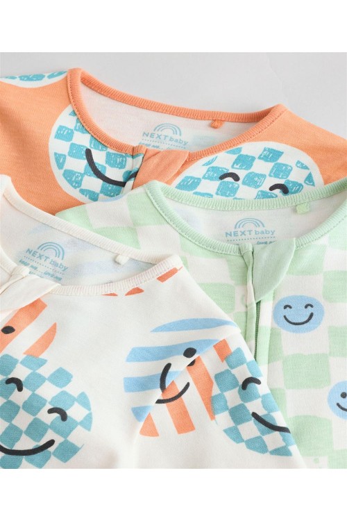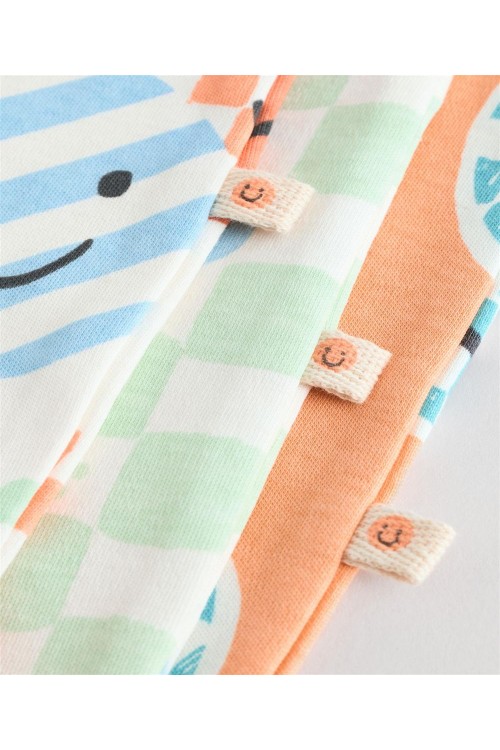 С двупосочен цип за лесно обличане, този комплект от 3 бр. цветни пижами са изработени от чист памук с дизайн без крачета, с ръкавици против надраскване с обръщане за допълнителен комфорт до 3-6 месеца.