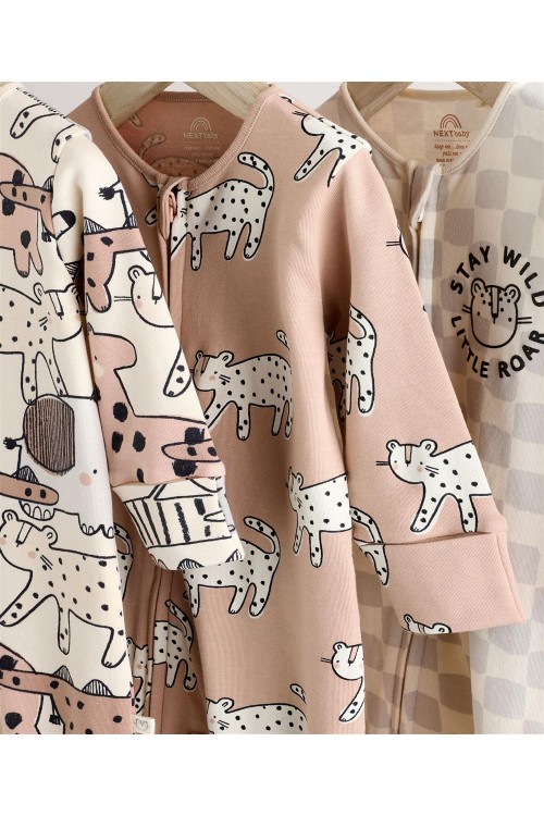 Тези свежи пижамки са незаменим елемент в гардероба на всяко детенце. Със своите закачливи щампи, те предлагат комфорт и чар. Изработени от чист памук, комплектът включва три пижамки с удобно закопчаване за лесно обличане. Ръкавичките за надраскване с обръщане за възраст 3-6 месеца осигуряват допълнителен комфорт.