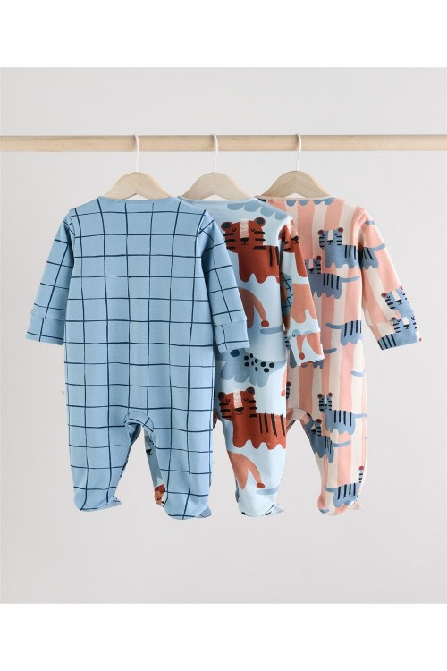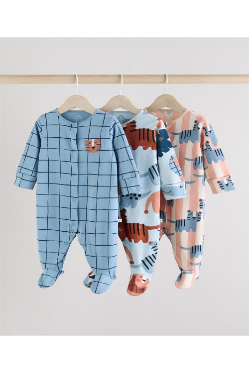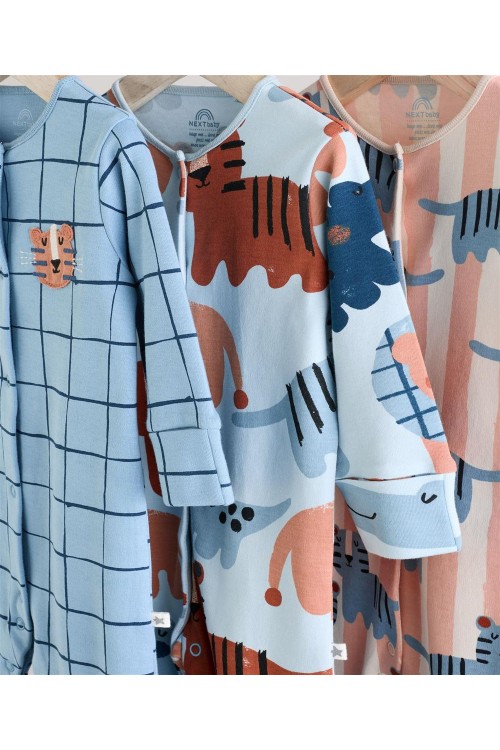 Запасете се с най-необходимите неща за сън с нашата селекция от 3 бр. бебешки пижами в различни цветове и щампи. Изработени от чист памук, със закопчаване с копчета за лесно преобличане и вградени крачета за допълнителен комфорт. Може да се пере в пералня.