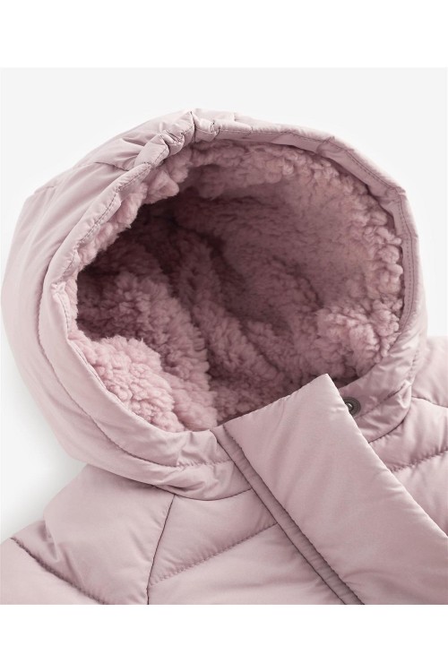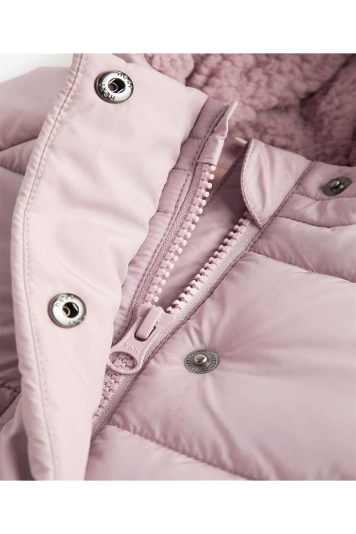 Уютна топлина за малките бебенца с това очарователно подплатено ватирано яке с качулка. Проектирано със скрит цип отпред, с удобна поларена подплата и маншети за допълнителна топлина. С качулка. Закопчаване със скрит цип. Подплата от полар. Машинно пране.