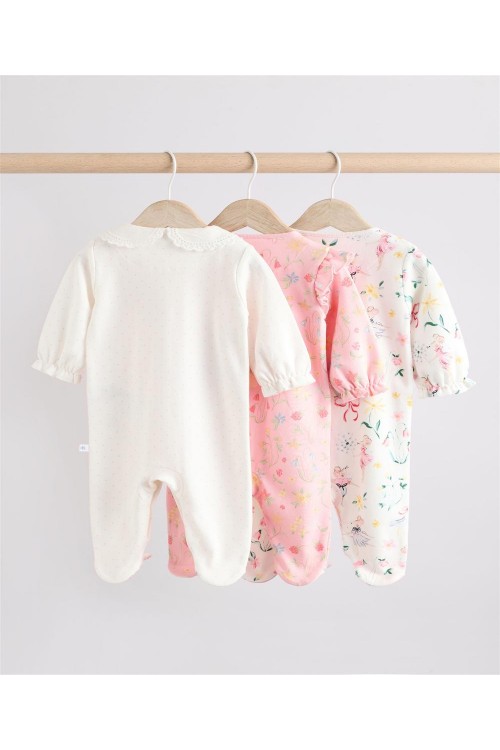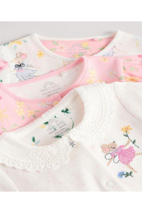 Тези нежни и стилни пижамки са незаменим елемент в гардероба на всяка принцеса. Със своите пастелни цветове и елегантни детайли като якички и къдрички, те предлагат комфорт и чар. Изработени от чист памук, комплектът включва три пижамки с удобни закопчалки за лесно обличане. Щампите на цветя и ръкавичките за надраскване с обръщане за възраст 3-6 месеца осигуряват допълнителен комфорт.