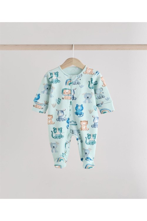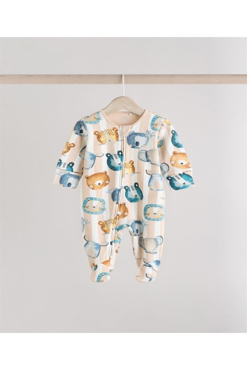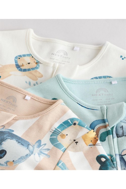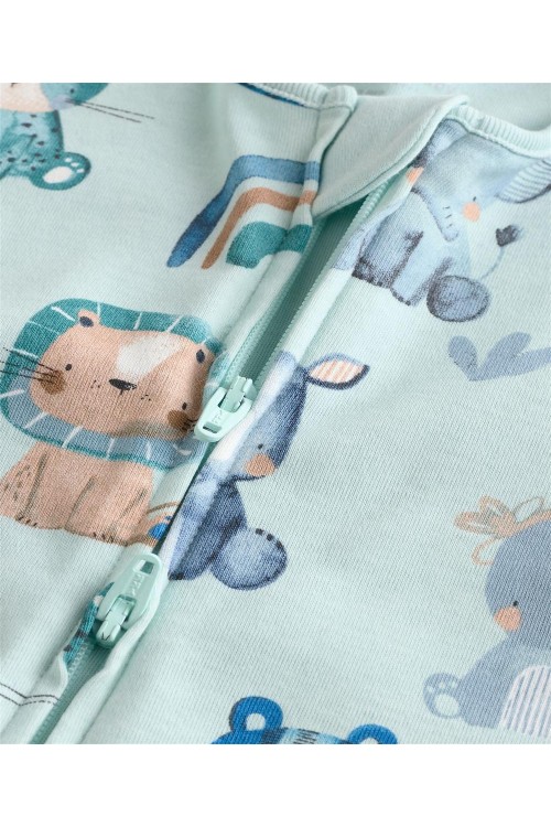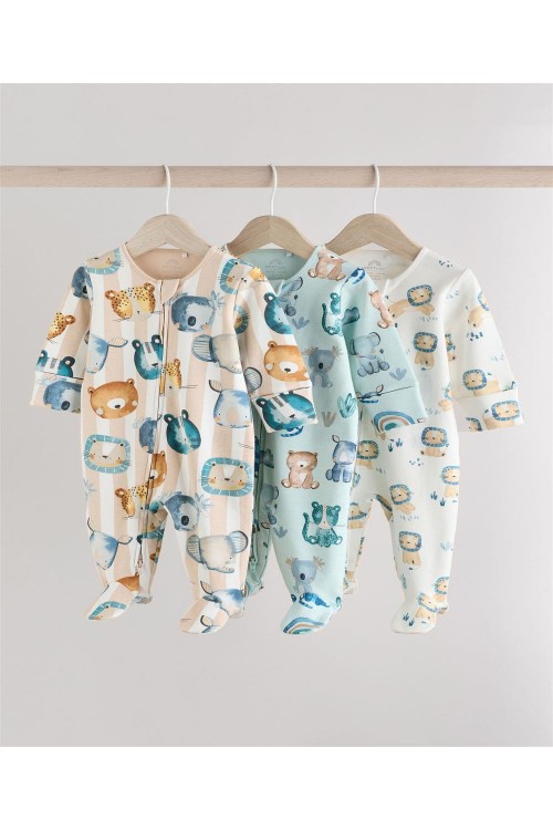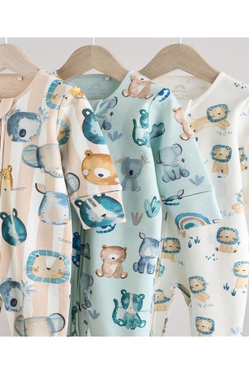 Тези свежи и стилни пижамки са незаменим елемент в гардероба на всяко бебе. Със своите приятни цветове и щампи с животни, те предлагат комфорт и чар. Изработени от чист памук, комплектът включва три пижамки с удобни закопчалки с цип за лесно обличане.