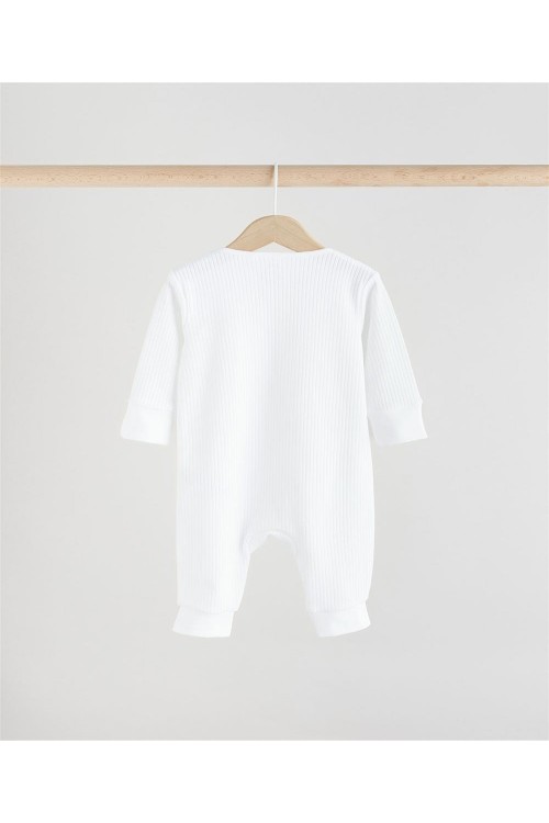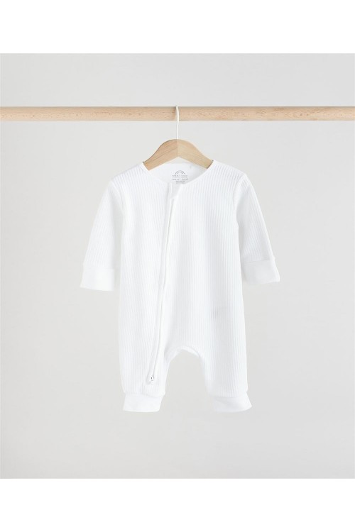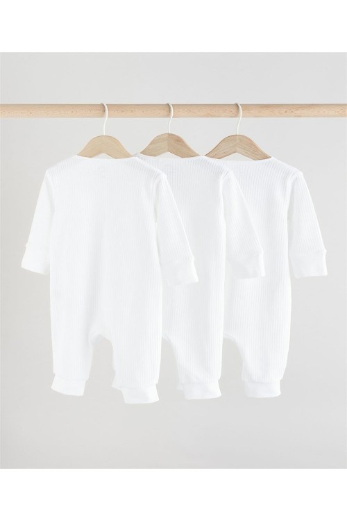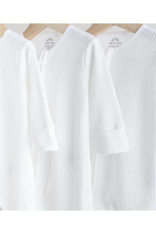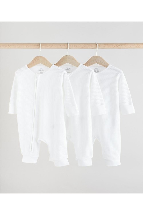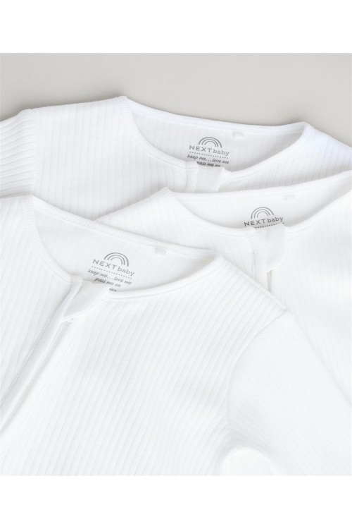 Сгушете новороденото си в нашия пакет от 3 бр. бели пижамки. Изработени от чист памук с двупосочно закопчаване с цип за лесно обличане.