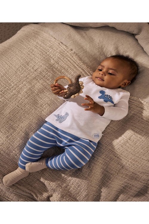 Супер забавен стил за ежедневния им гардероб. Този комплект от две части включва сладка бродирана блуза и съответстващи панталони от памучна материя, завършени с ластик на талията.