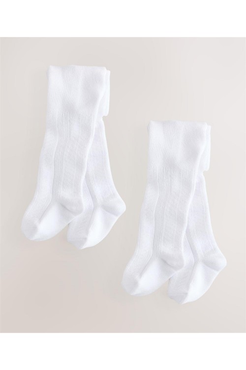Изработени от мека памучна смес, тези удобни 2 бр. бели чорапогащника са идеални за ежедневния им гардероб, Могат да се перат в пералня