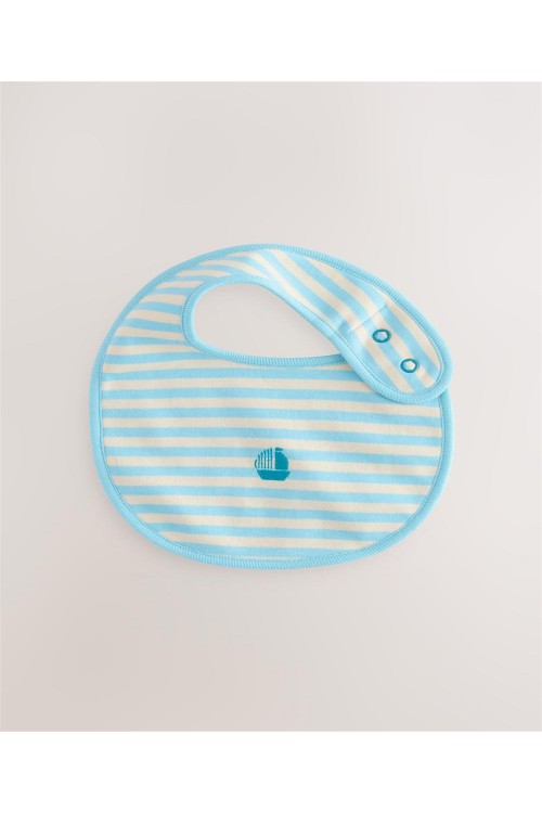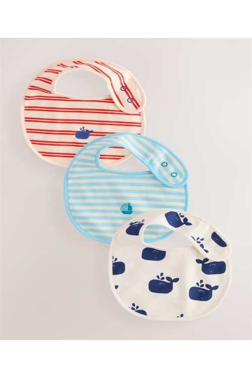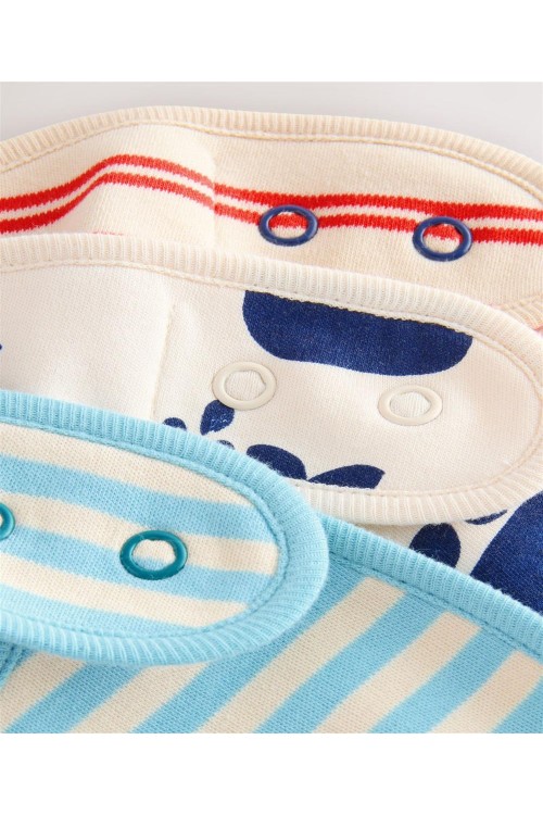 Този комплект от 3 бебешки лигавника е изработен от памучна смес и е украсен със забавни морски щампи. Всеки лигавник е със слой против капене и закопчаване с копче за лесно обличане.