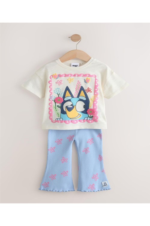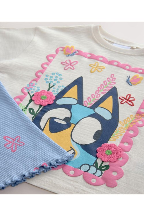 Нека Блуи украси лятната им визия с този комплект тениска и клин. Изработен от памучна смес, този комплект от две части включва тениска с нормална кройка и разкроен клин, и двата покрити със забавен син принт.