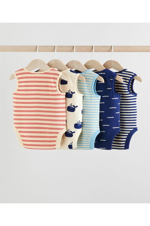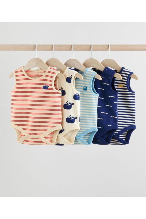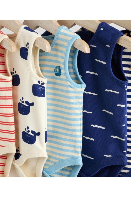 Този комплект от 5 бр. бебешки бодита е изработен от чист памук и е украсен със забавни морски щампи.