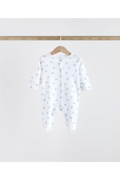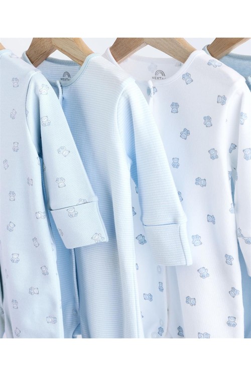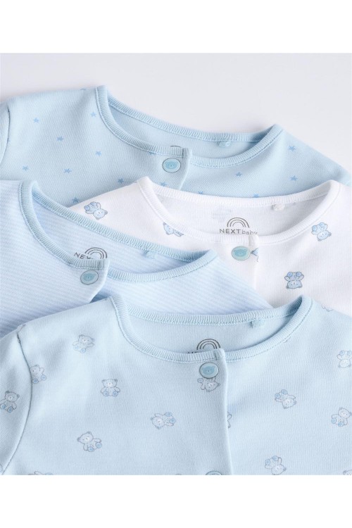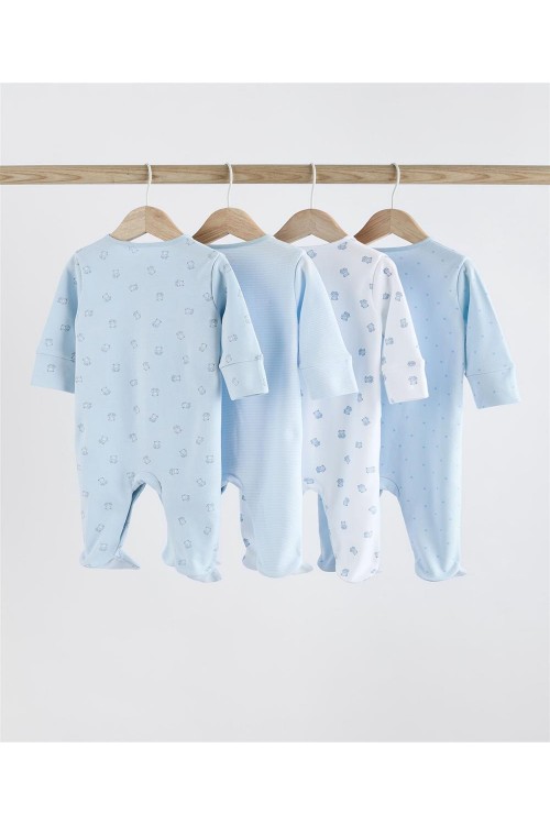 Тези свежи пижамки са незаменим елемент в гардероба на всяко детенце. Те предлагат комфорт и чар. Изработени от чист памук, комплектът включва 4 бр. пижамки с удобни закопчалки за лесно обличане. Ръкавичките за надраскване с обръщане за възраст 3-6 месеца осигуряват допълнителен комфорт.