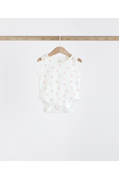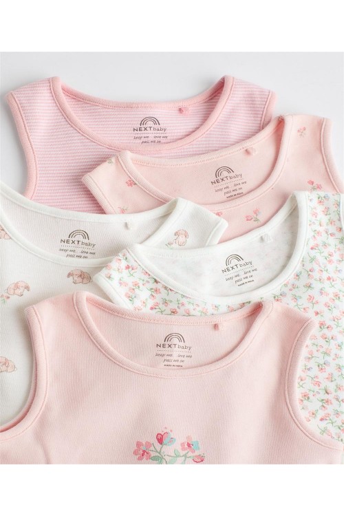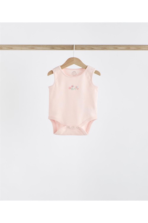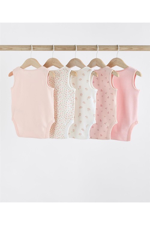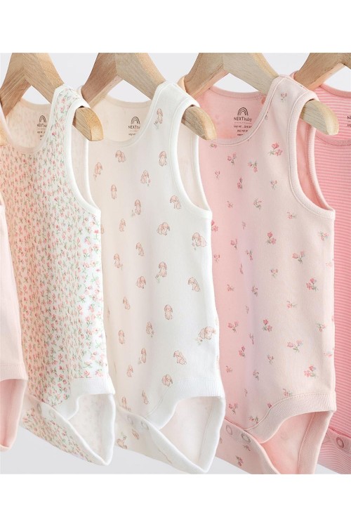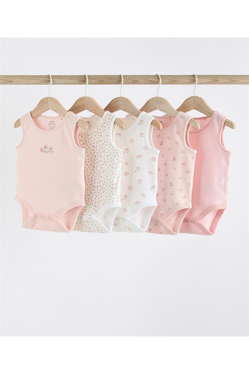 Нашият комплект от 5 бебешки бодита - потник е перфектното допълнение към гардероба на вашето малко момиченце. Изработени от мек памук, тези очарователни бодита имат нежни флорални принтове. С удобно овално деколте и практични закопчалки между крачетата, обличането и преобличането на вашето бебе ще бъде лесно и бързо. Може да се пере в пералня.