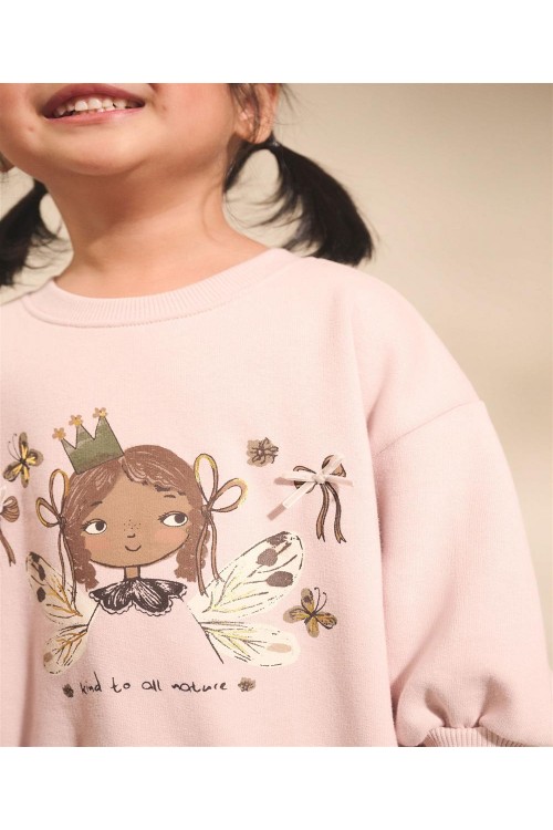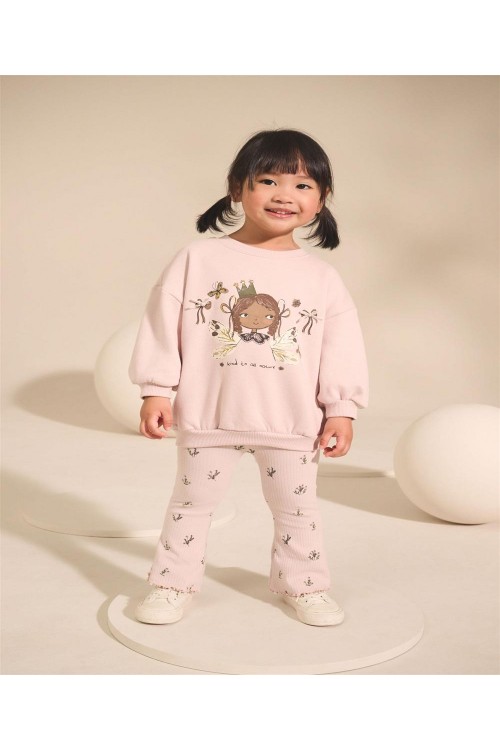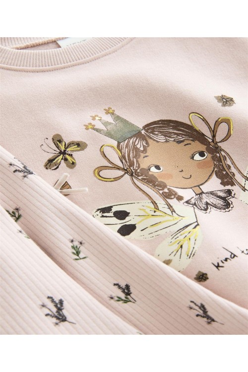 Дайте воля на въображението на вашето мъниче с нашия очарователен комплект от розов суитшърт с фея и разкроен клин. Този очарователен комплект от две части е създаден както за вълшебни приключения, така и за уютни моменти. Дизайнът е съчетан със сладък детайл с фея и съответстващ рипсен клин.