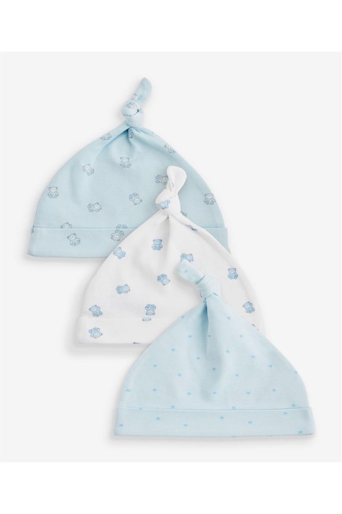 Комплект от 3 бр. удобни бебешки шапки с щампи на мечета и точки. Може да се перат в пералня