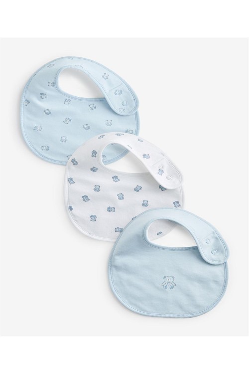 Този удобен комплект от 3 бр лигавника е изработен от чист памук със слой против капене, който предотвратява цапане, докато децата ядат и пият, закопчава се с копче и има очарователен дизайн с мече.