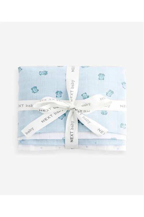 Този удобен пакет от чист памучен муселин за бебета с принт в синьо е идеален за многократна употреба, от почистване на разливи до повиване като завивка. Дрехите са изработени от мека абсорбираща материя, без вредни оцветители и химикали.