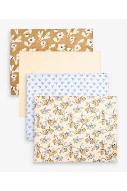 Комплект от 4 бр. бебешки пелени. 100% памук. Мека абсорбираща материя. Ффлорален принт. Без вредни оцветители и химикали.