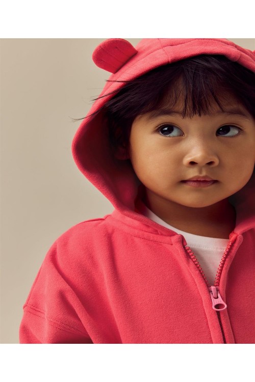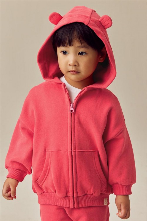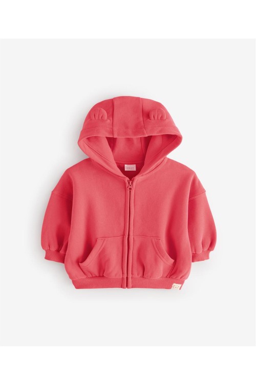 От памучна смес, този суитшърт с цип и качулка ще я накара да се чувства уютно, когато го облече върху любимите си ежедневни тениски или рокли, с паднали рамене и качулка с 3D уши. Може да се пере в пералня.