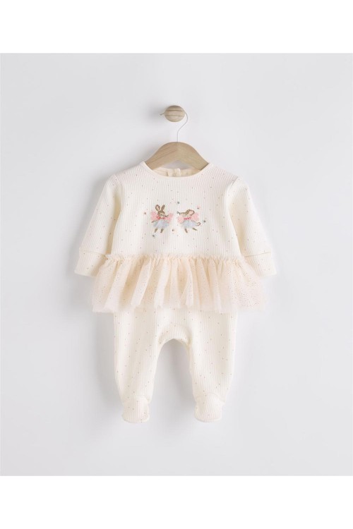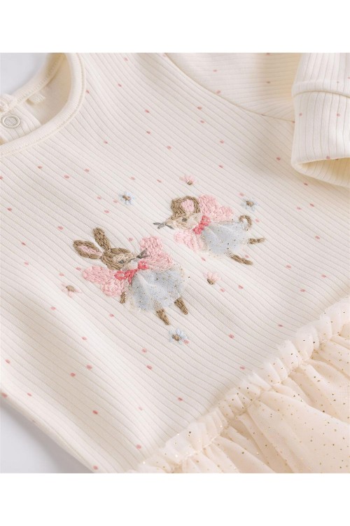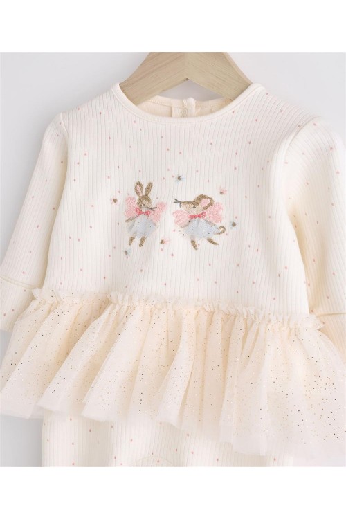 Нека вашата малка госпожица изглежда неотразимо в тази нежна пижамка тип „фея“. Изработена от супер мек памук, с дизайн на сладък бродиран герой и забавен дизайн на пола тип „туту“. Закопчава се с копчета за лесно обличане.