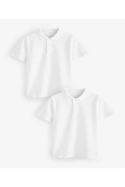 Тази опаковка от 2 бели поло тениски е изработена от 100% памук. Те имат яка с копчета и покритие против петна.