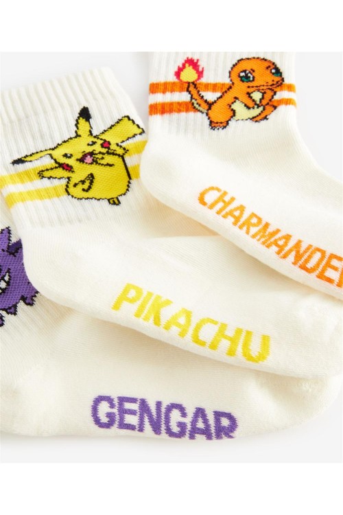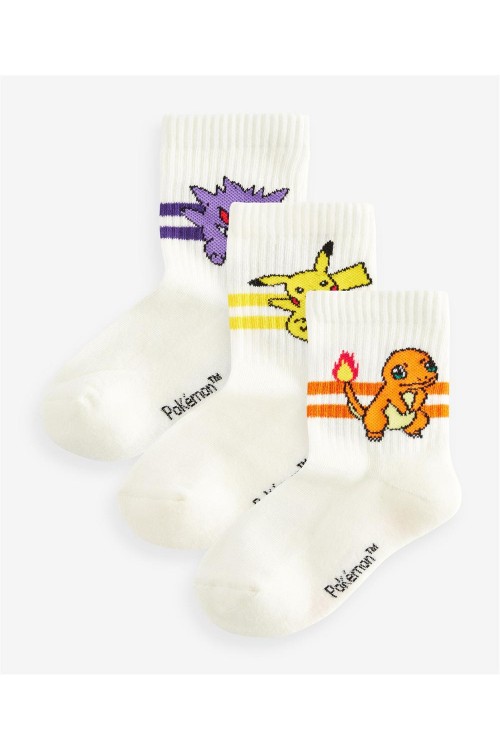 Този комплект от 3 чифта чорапи е идеален за амбициозни треньори на покемони, изработен от богата на памук материя, щампи с герои като Пикачу, Чармандър и Генгар и лога на покемони по подметката.