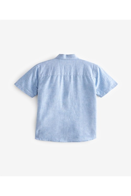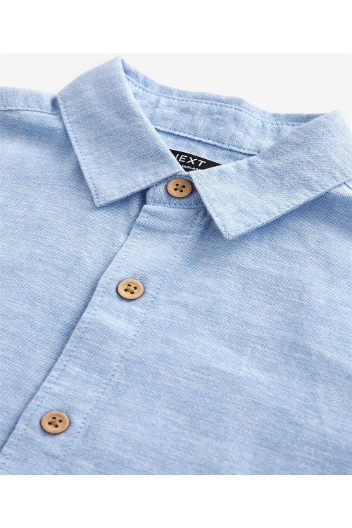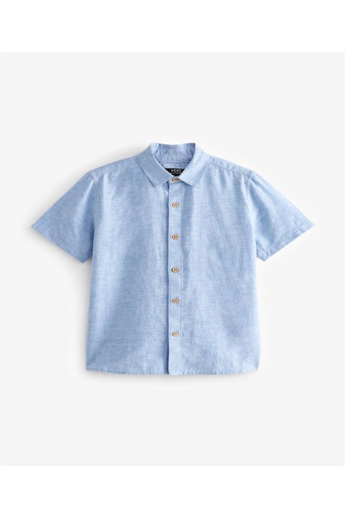 Тази стилна риза от памучна смес и лен е със закопчаване с копчета, заострена яка и къси ръкави, идеална за носене върху тениска за небрежен вид.