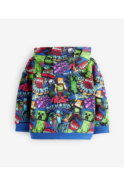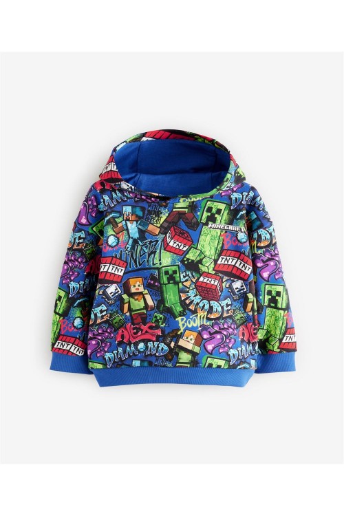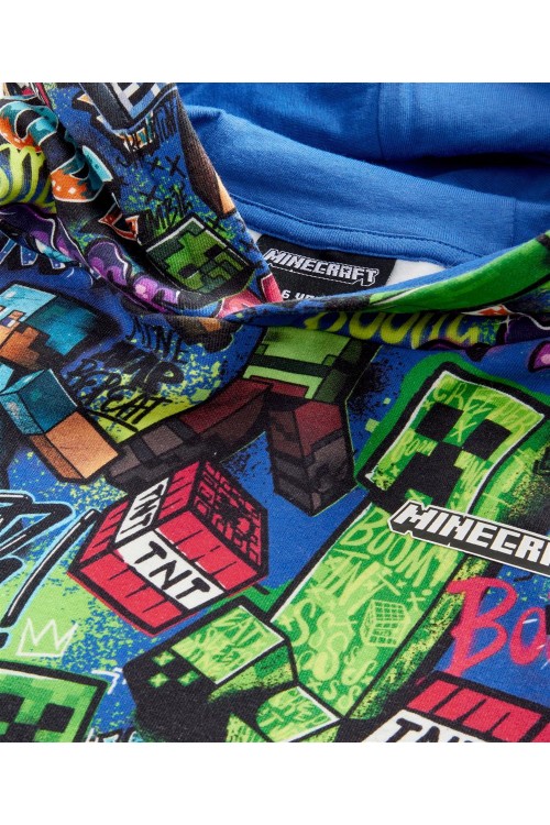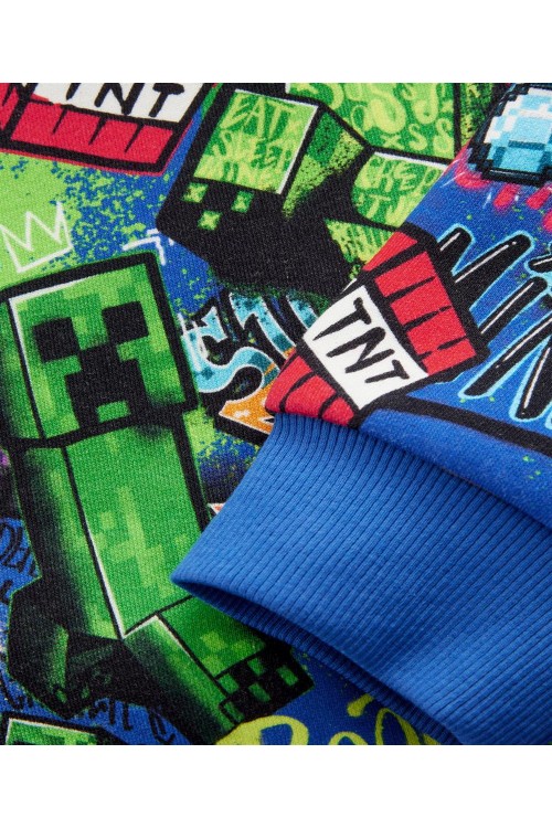 Идеален за геймъри, този уютен суитшърт от чист памук е с цялостен принт Minecraft, качулка, джоб тип „кенгуру“