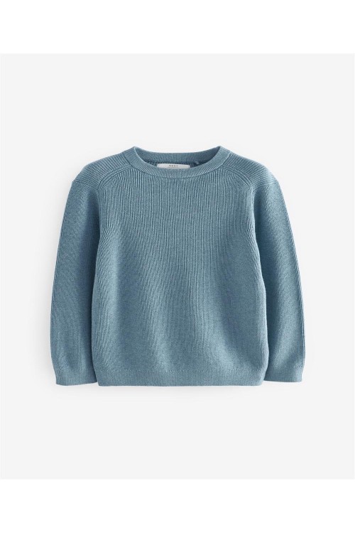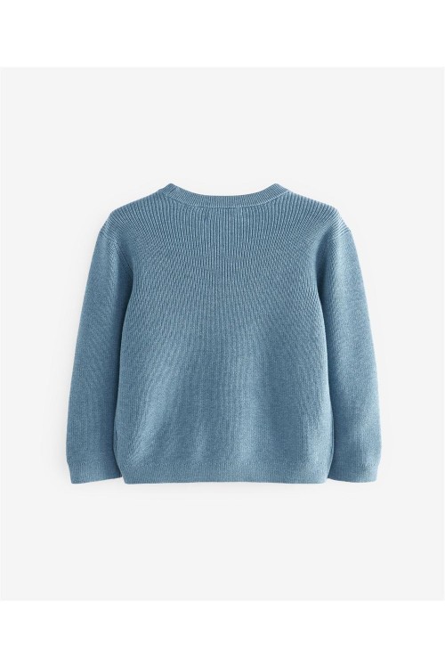 Добавете цвят в гардероба на вашето дете с този син пуловер. Изработен от мека плетка с класическо обло деколте, той е уютен, универсален и идеален за по-хладни дни.