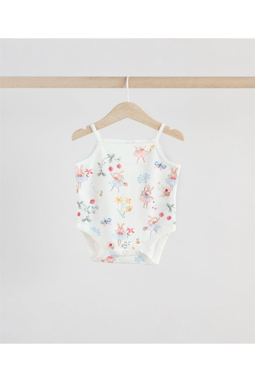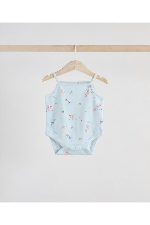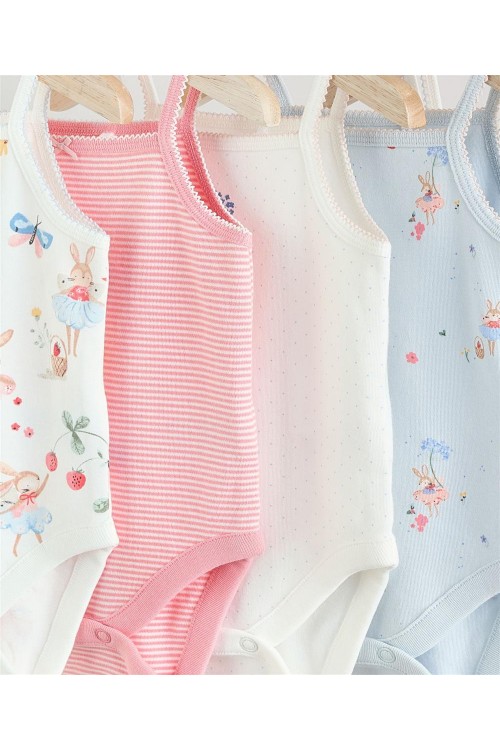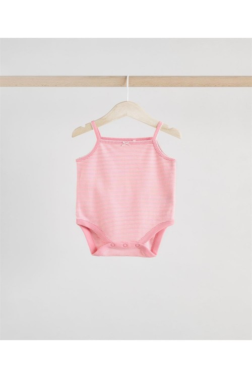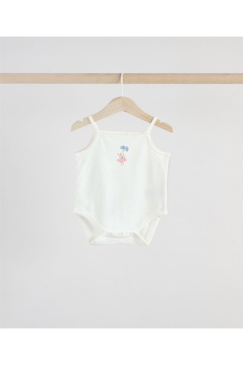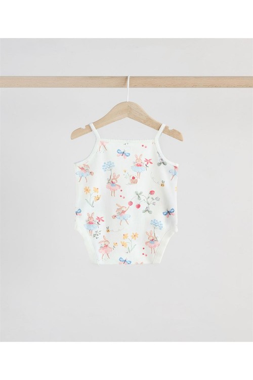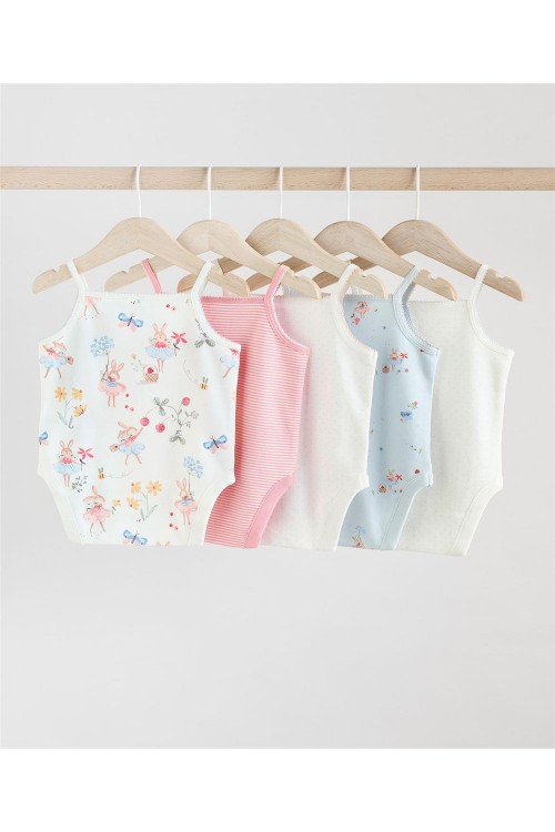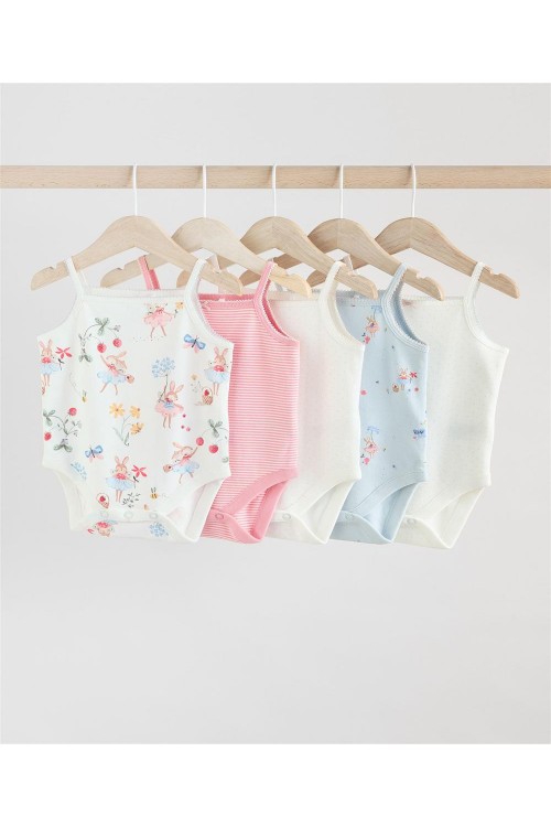 Комплект от 5 бр. бодита-потник, изработени от чист памук, идеални за лятото със сладки щампи и цветове, завършени с копче за лесно обличане.