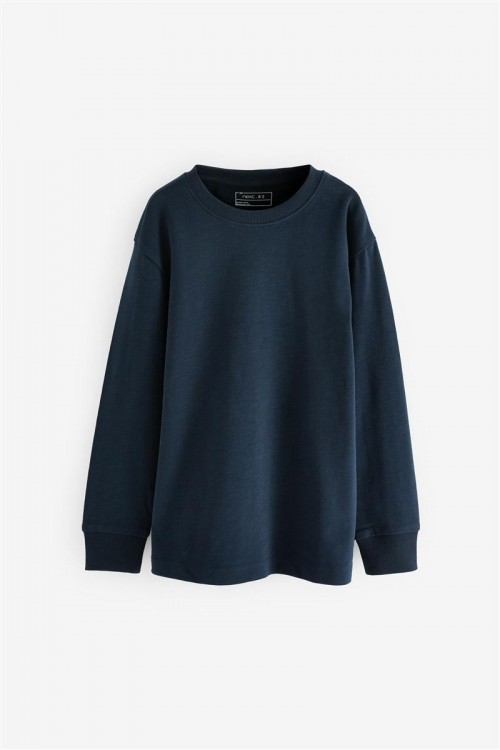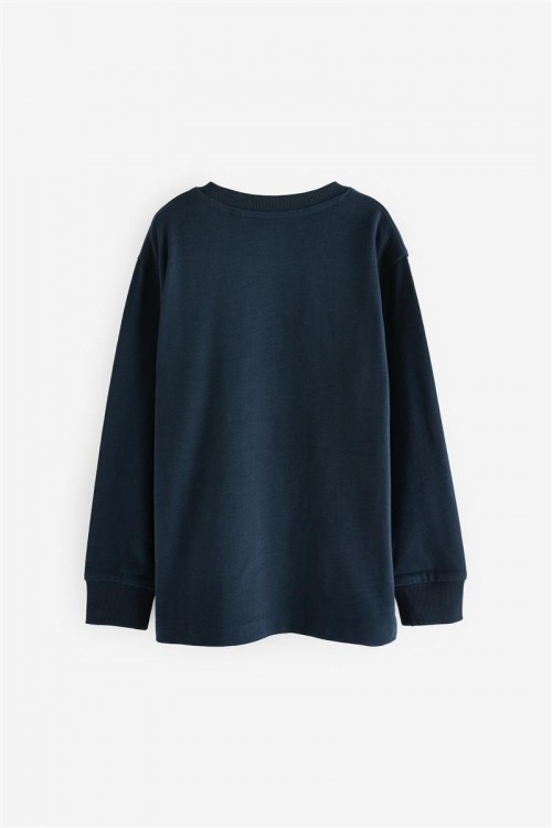 Абсолютно необходимост за гардероб за вашето момче, Изработен от мек и дишащ памук, блузата с дълъг ръкав и обло деколте в тъмносиньо е със стандартна кройка и ще му осигури комфорт през целия ден. Може да се пере в пералня.