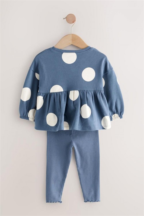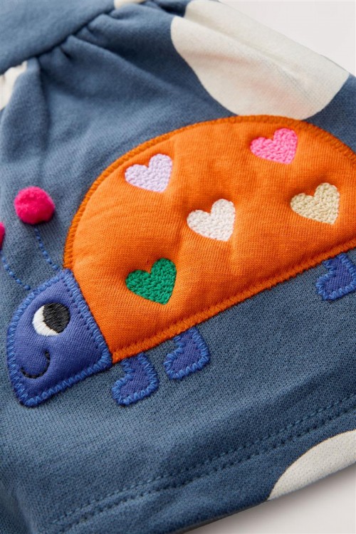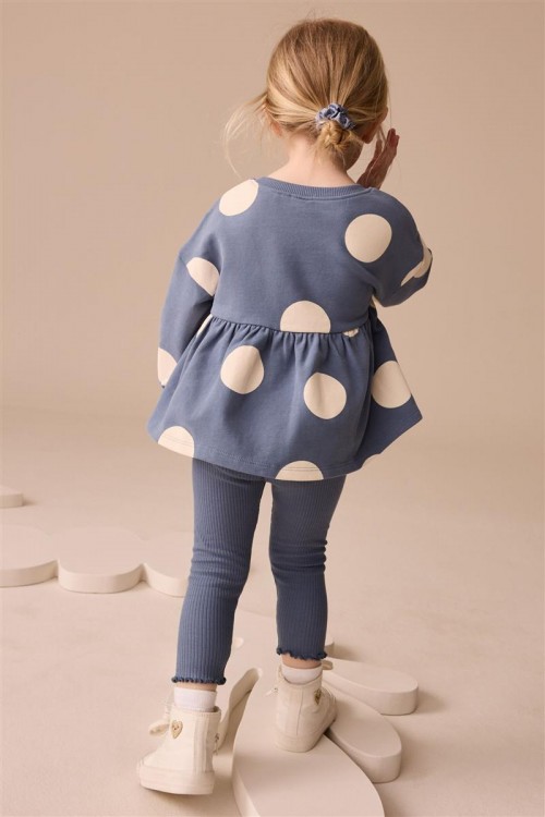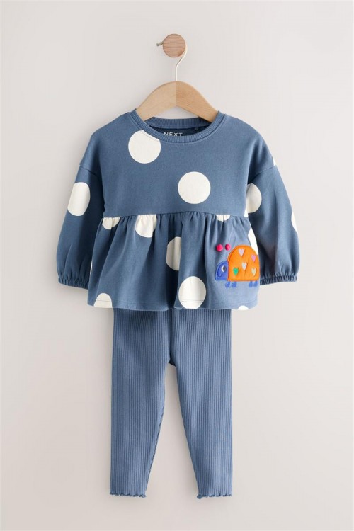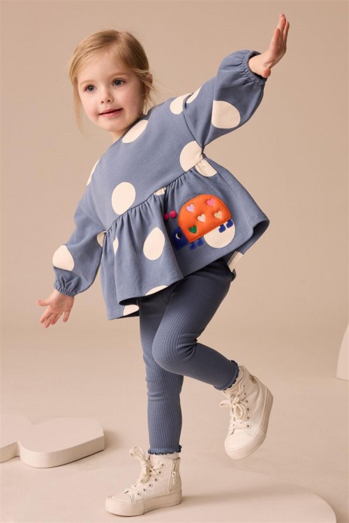 Добавете още стил към гардероба на вашето момиче с този комплект от две части. Блуза с дълъг ръкав на точки със сладка бродерия- калинка и удобен еластичен клин.