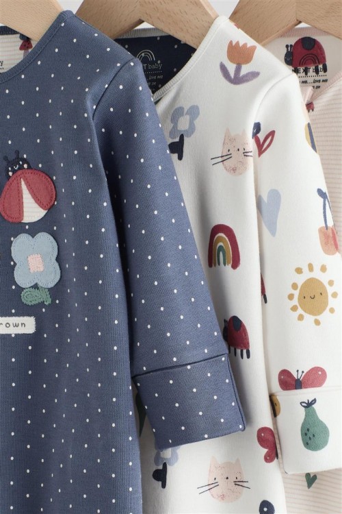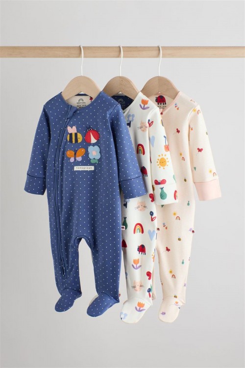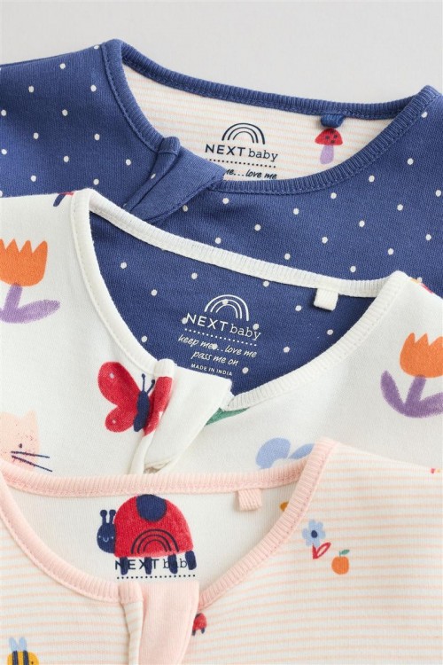 Тези свежи и стилни пижамки са незаменим елемент в гардероба на всяко бебе. Със своите приятни цветове и щампи, те предлагат комфорт и чар. Изработени от чист памук, комплектът включва три пижамки с удобни закопчалки с цип за лесно обличане.
