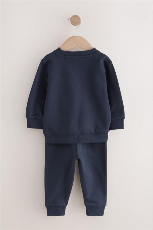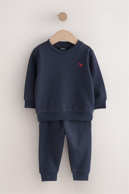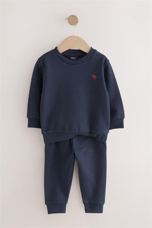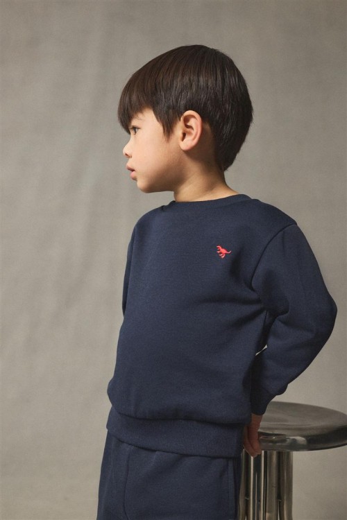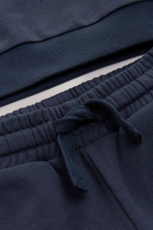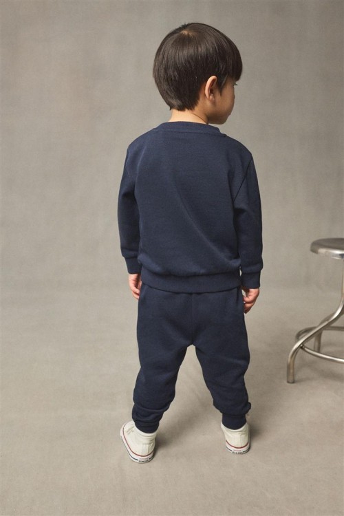 Осигурете комфорт на вашето дете с този тъмносин екип. Включва мека блуза с малко лого на гърдите и съчетан панталон тип джогър. Идеален за ежедневие, игри и почивка. Може да се пере в пералня.