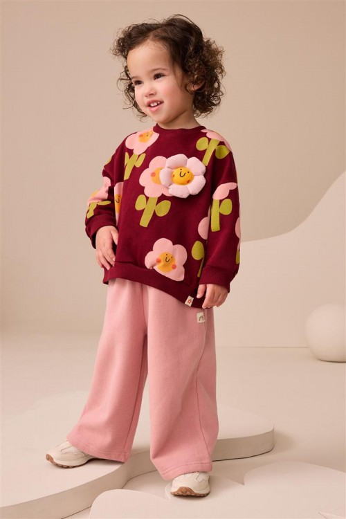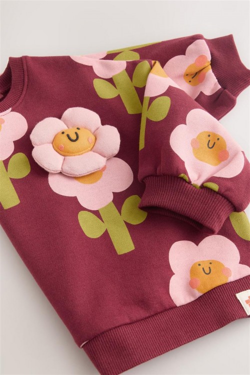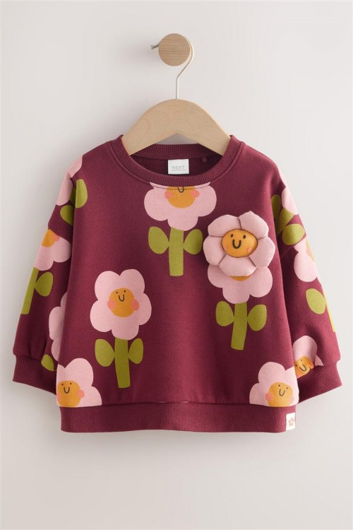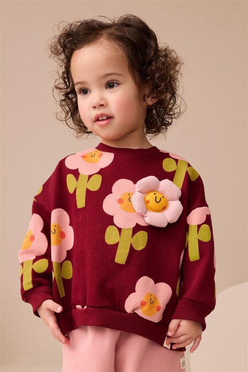 Мек и удобен, този суитшърт е с обло деколте, флорални мотиви и 3Д дизайн-цвете. Със свободна кройка, може да се съчетае с удобен клин или дънки.
