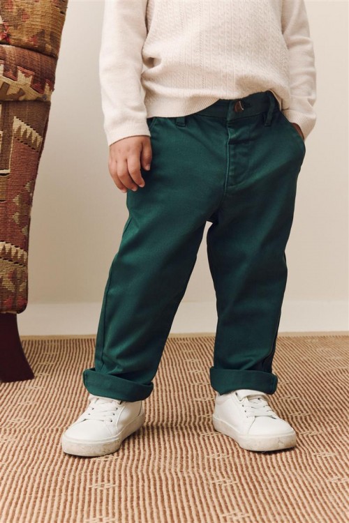 Незаменим елемент от гардероба им, този супер мек и удобен панталон е изработен от памучен еластан за еластичност. Предлага се с полуластична талия, закопчаване с копчета, джобове отпред, джобове с кантове отзад и гайки за колан, които са идеални за елегантен и ежедневен стил.