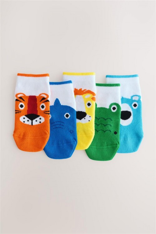 Тази опаковка от 5 чифта бебешки чорапи в различни цветове със животни са меки и удобни. Вашето мъниче ще се чувства комфортно през целия ден.