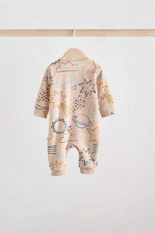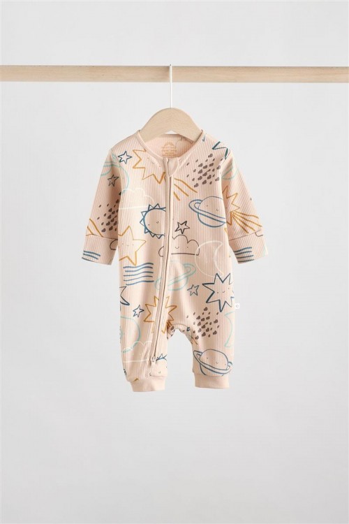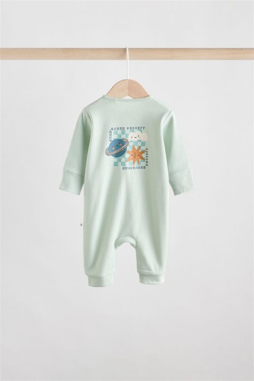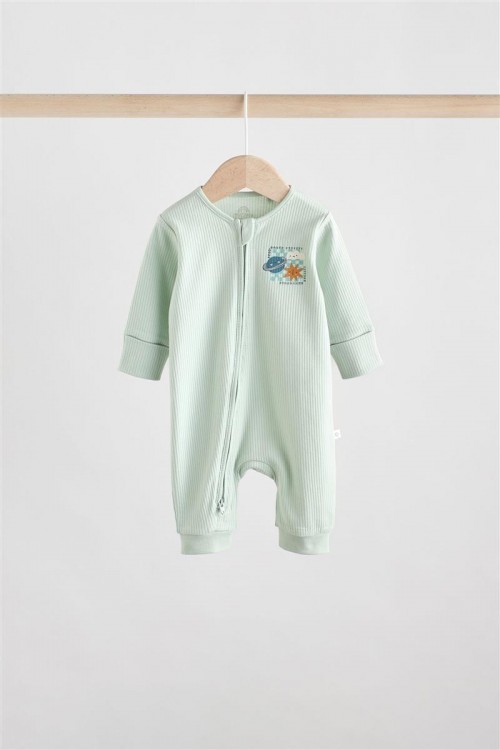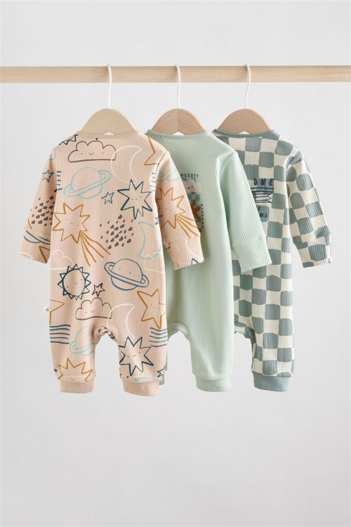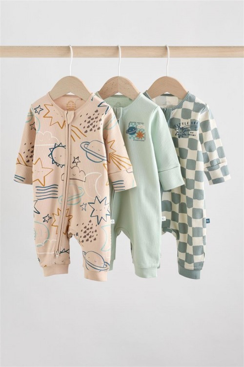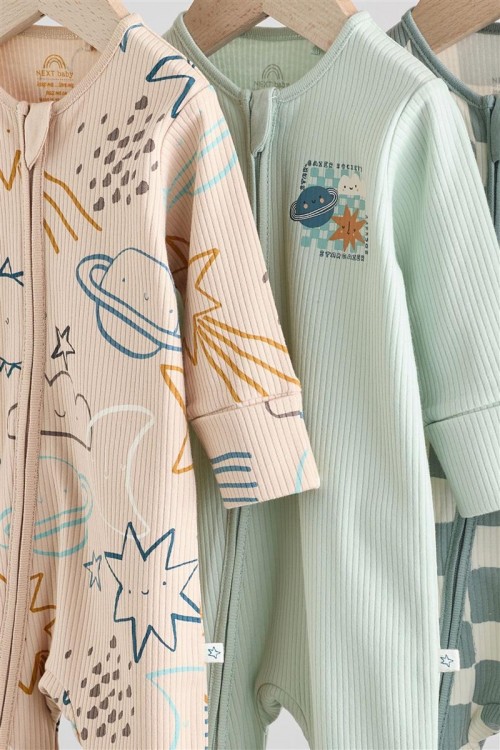 От супер мека материя и налични в удобна опаковка от 3 броя, вашето мъниче ще хареса тези свежи пижамки с щампи. Закопчаване с цип и вградени ръкавици за надраскване за допълнителен комфорт