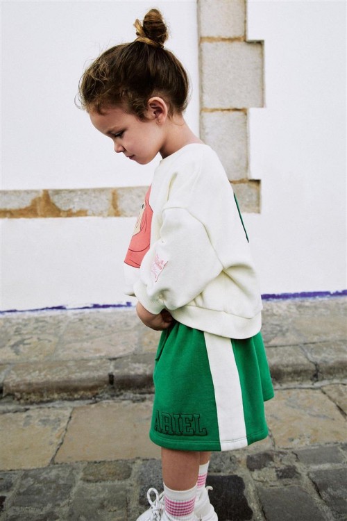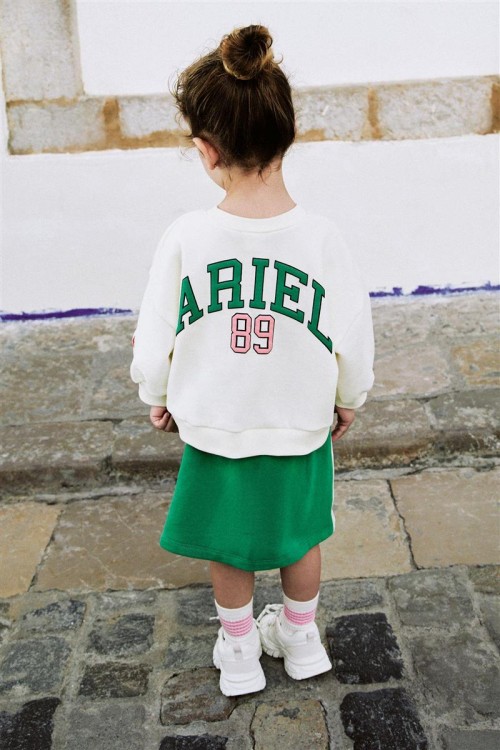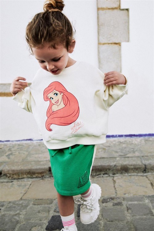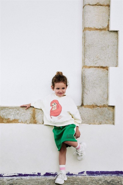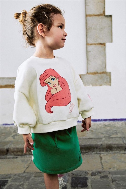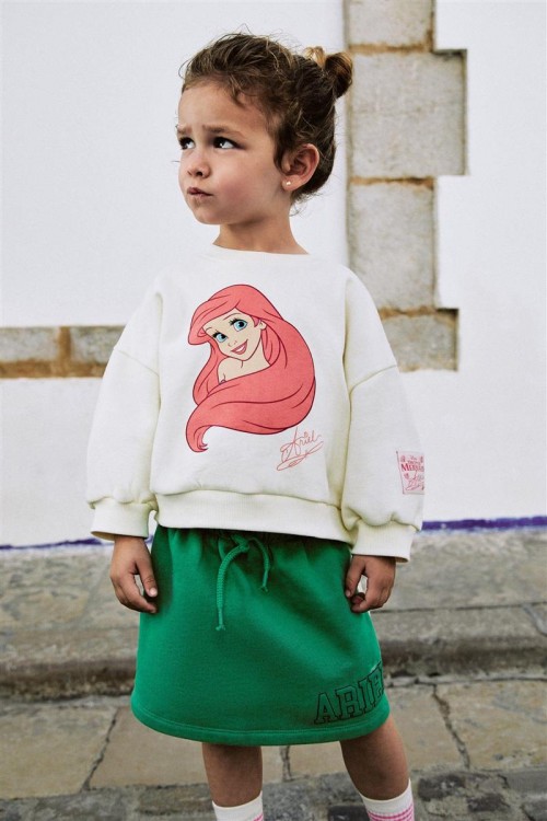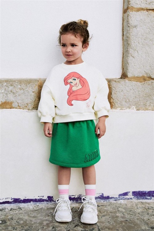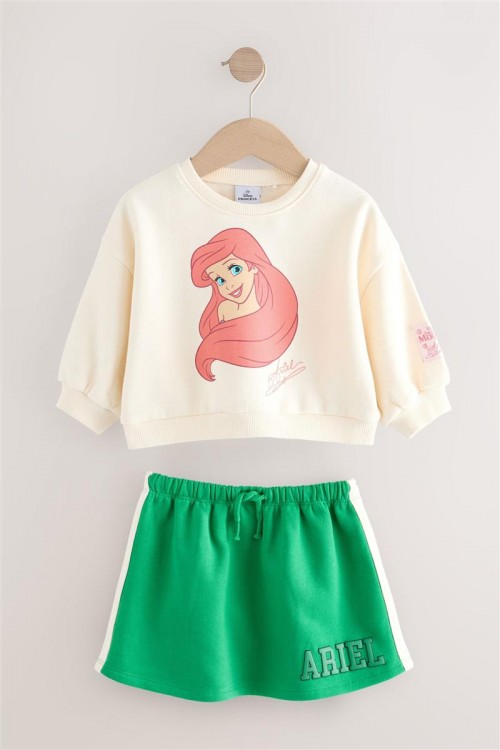 Добавете магията на Дисни в гардероба на вашето дете с този комплект Ариел. Съдържа кремава блуза с щампа на Малката русалка и зелена пола с надпис „Ariel“. Забавен, удобен и идеален за ежедневни приключения.